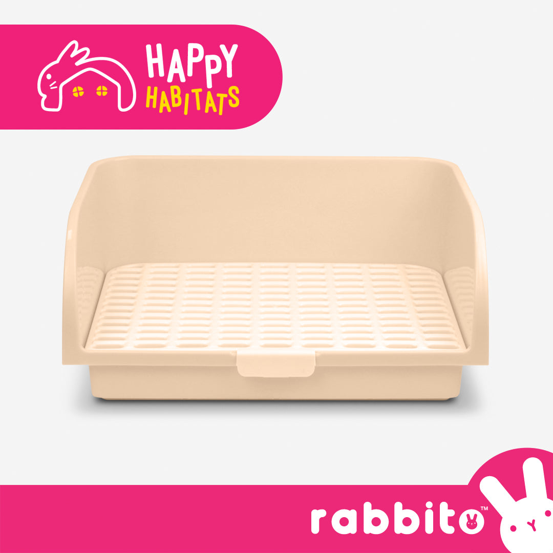 Our Happy Habitats Pawsome POTTY XL was designed to give rabbits a comfortable toilet time without the leaks and spills. Our Potty XL comes with a removable mesh flooring made of durable plastic to keep your little one’s paws clean and comfortable, and to make cleaning easier for hoomins. High walls also prevent any unwanted spills.